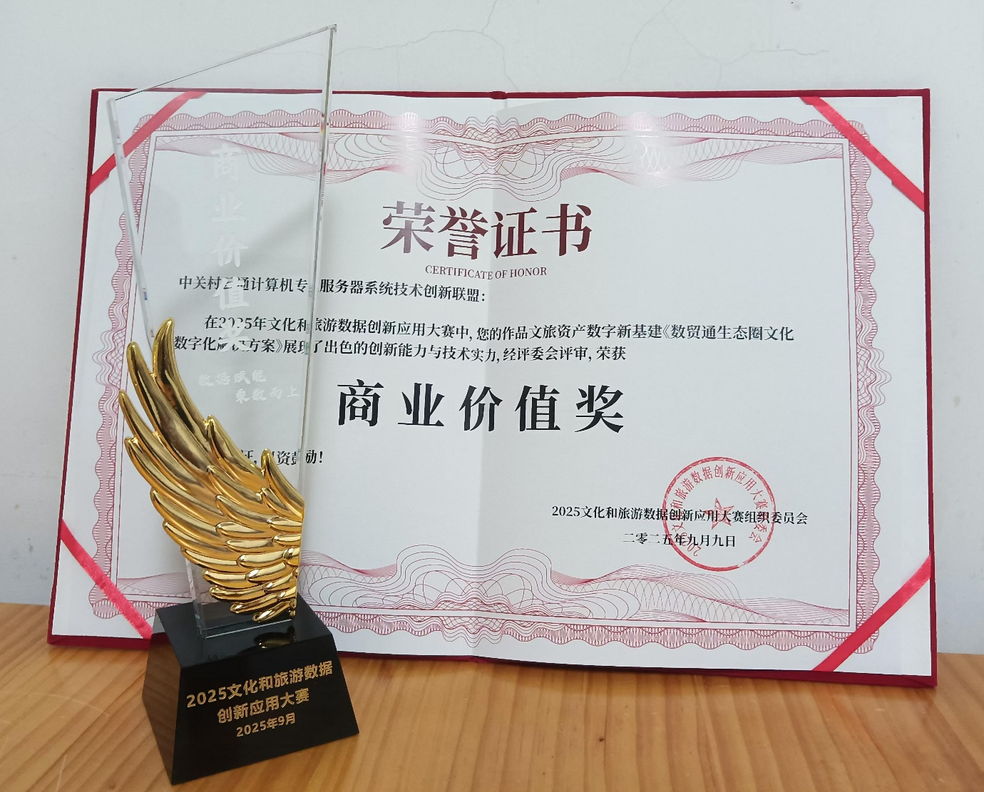 中关村云通计算机专业服务器系统技术创新联盟荣获2025文化和旅游数据创新应用大赛商业价值奖